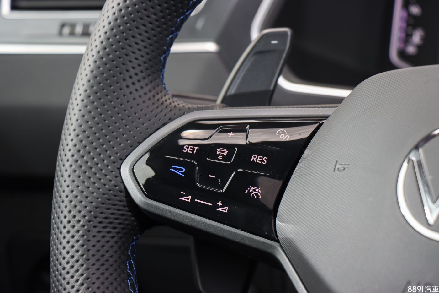 R方向盤有專屬換檔撥片造型,面積大上不少,對於激烈操駕有幫助,左邊快捷鍵則多出R按鈕,方便駕駛快速切換Comfort、Sport、Race、個人化四種模式,也可以快速按兩下直接進入Race,讓Tiguan R彈指間進入戰鬥狀態。