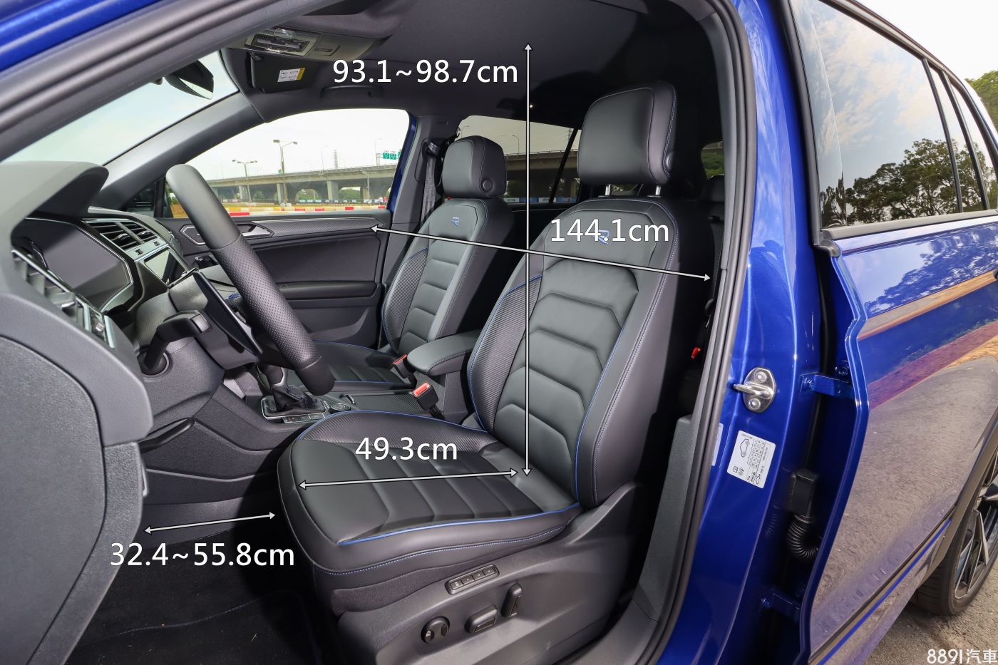 如果測試對象是一般Tiguan,我們對這張椅子不會有太多怨言,帶有電動調整、記憶功能之外,泡棉軟硬適中、夠貼合身形,日常開舒適度很夠,但如果想胚車的話,肩、腰、大腿側向支撐略嫌不足。