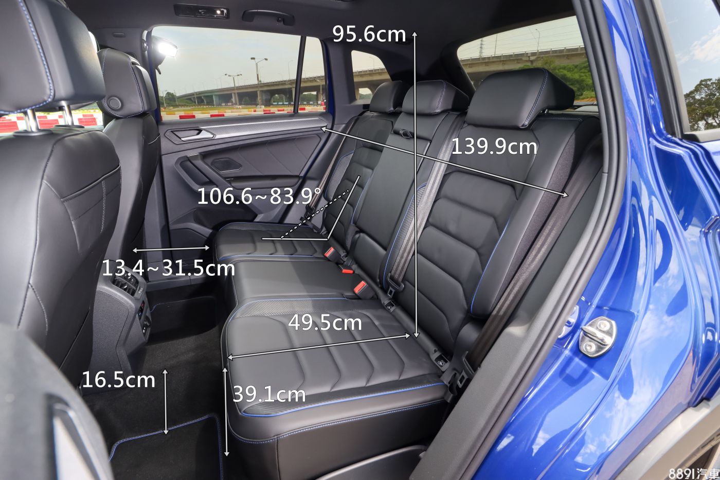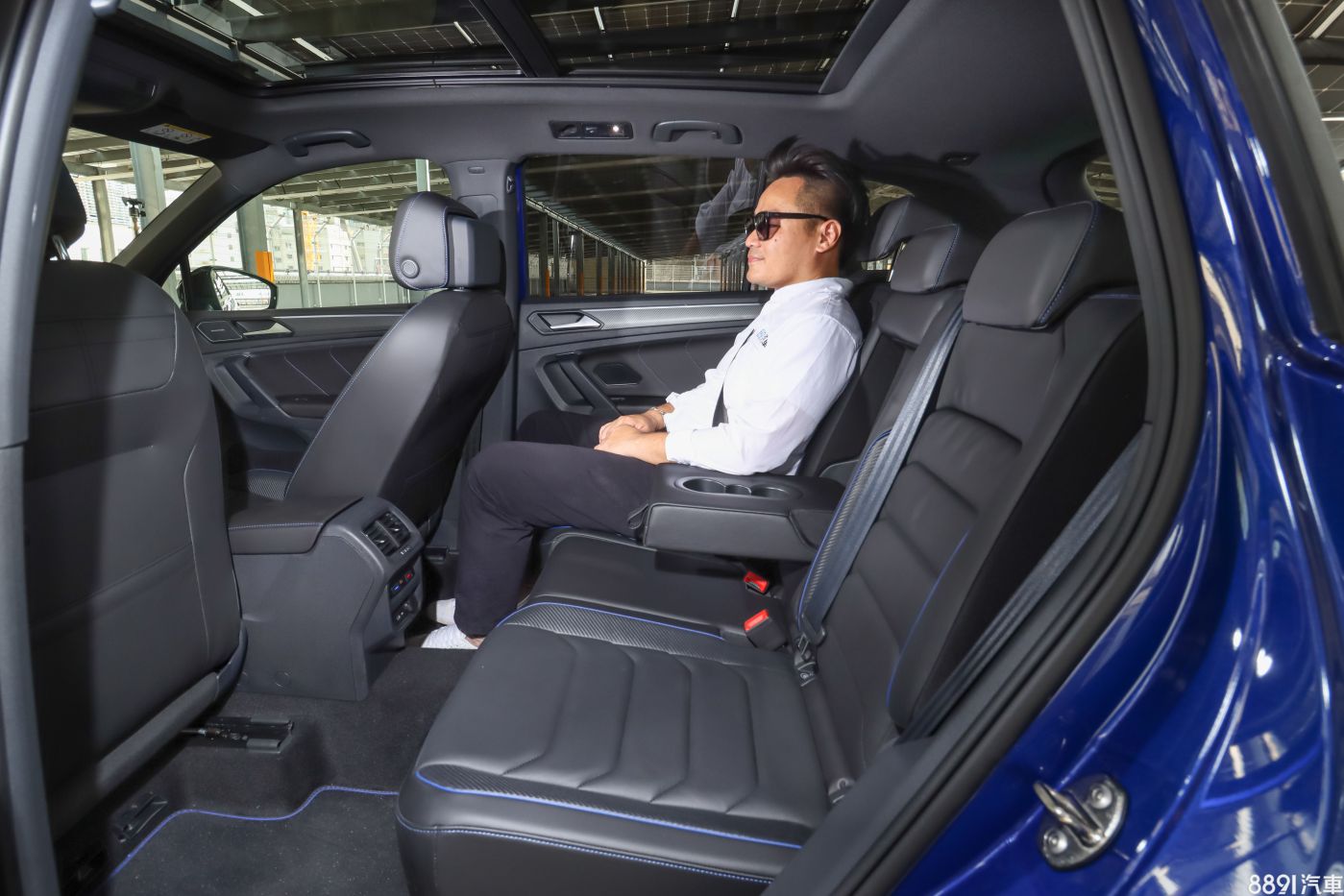 後座椅背可調整範圍夠大,能讓乘客自由調整坐姿,加上椅面剪裁立體,乘坐舒適性夠高,加上Tiguan兩側窗戶夠大、腰線低,R版又有全景天窗加持,感覺更開闊放鬆了。