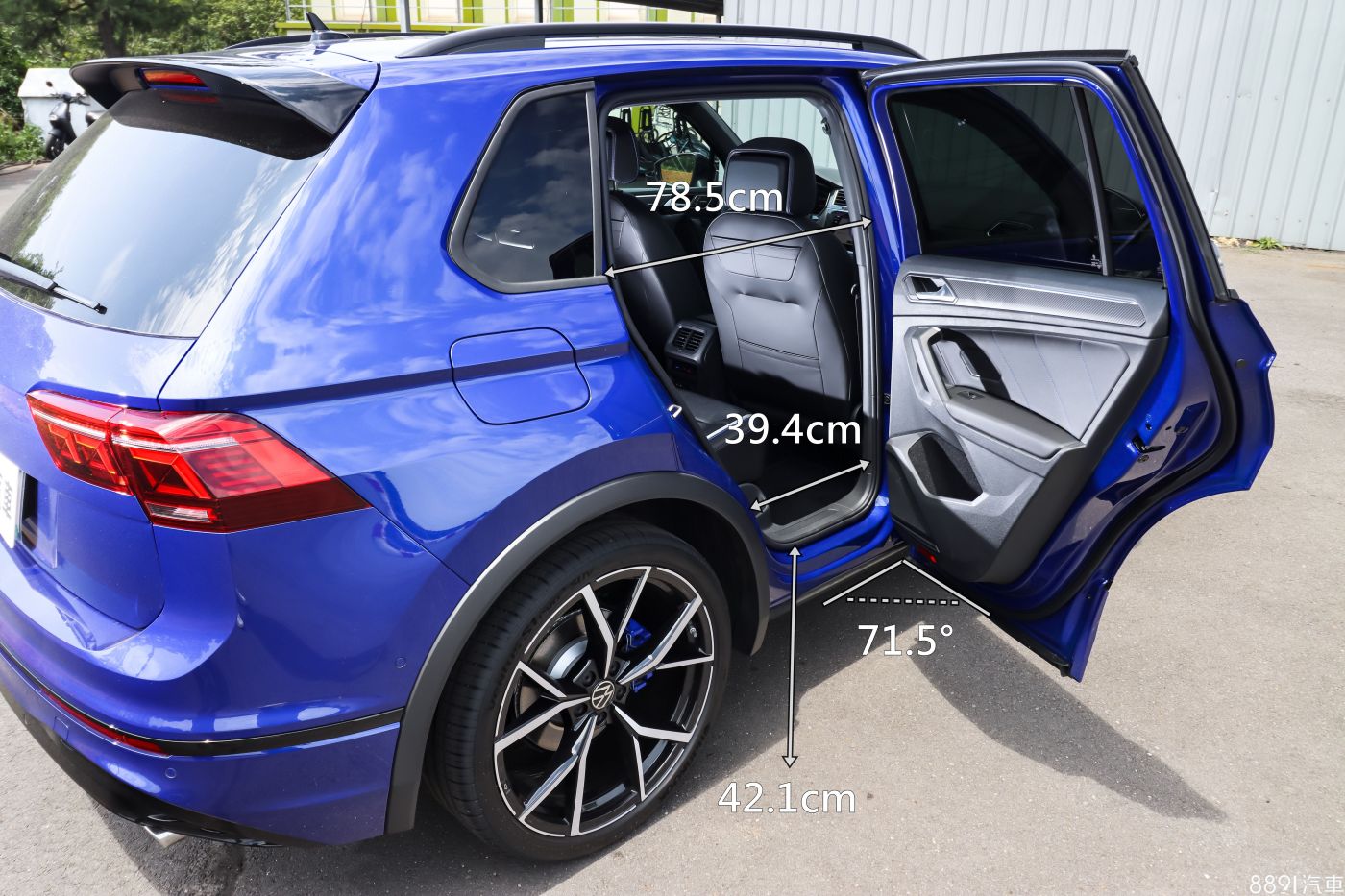 Tiguan開口造型方正,開門角度夠大,這次R車型因懸吊、胎圈配置緣故,底盤又比一般版來得低一些,也降低了後座門檻高,但實際使用感受與一般版本相仿,上下車都屬便利。