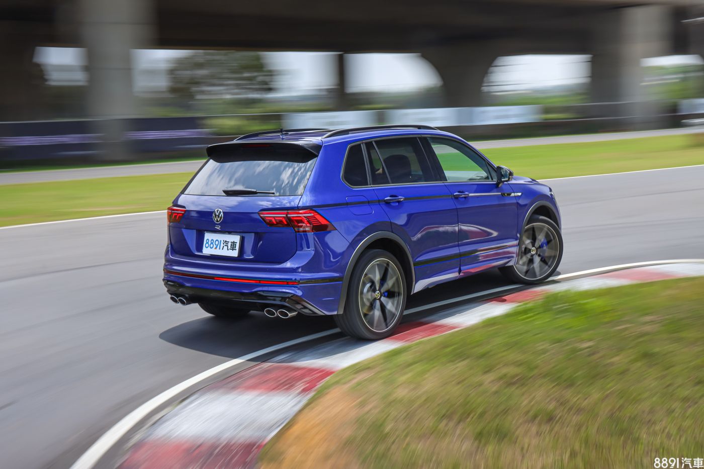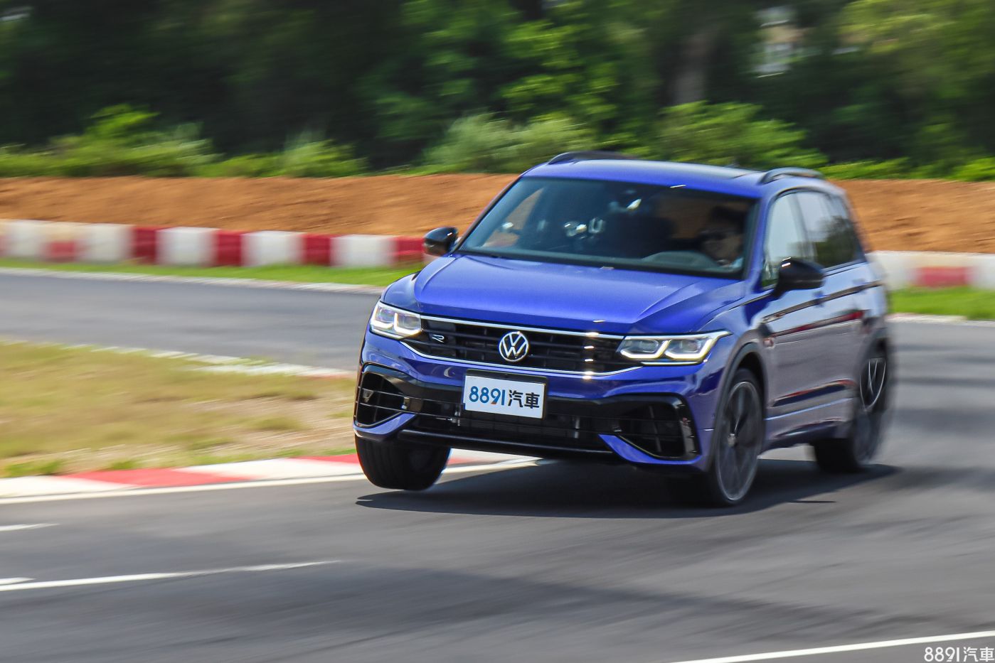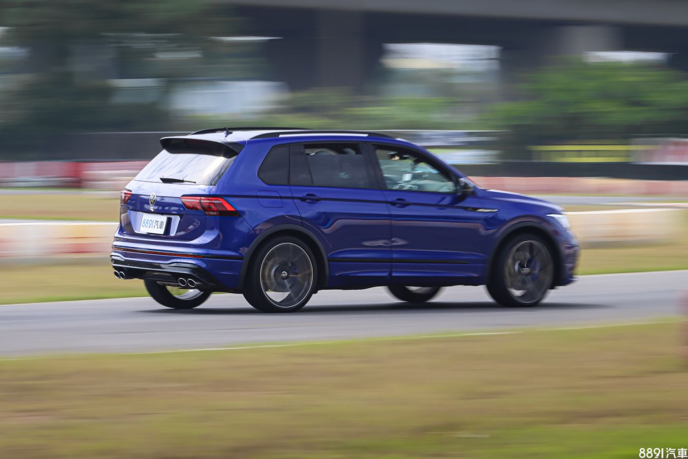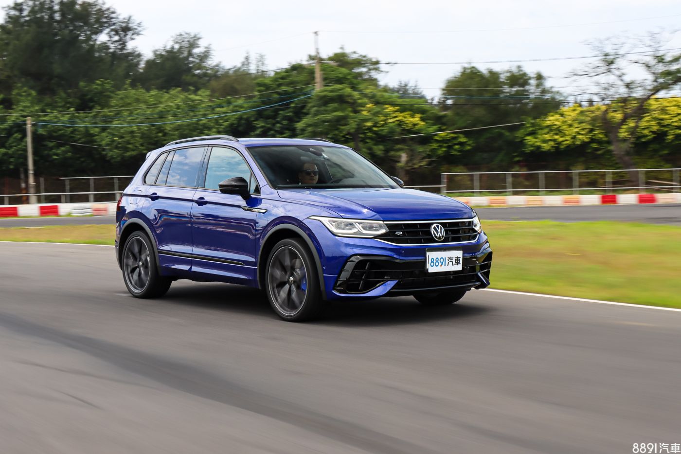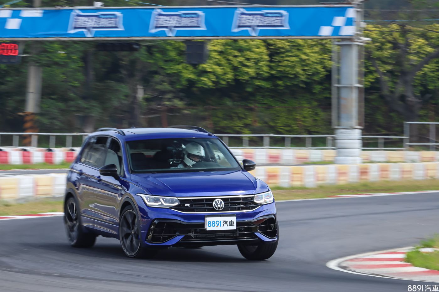 雖然Tiguan R強調高性能,但整體重心感與一般Tiguan相同,是標準的SUV設定,就連坐姿也無稍微降低,若單純論坐在裡頭的感受,並沒有濃郁的性能味。要挑戰單圈,自然是選擇R賽車模式,此時電子懸吊的阻尼相當硬朗,為超過1.7噸的車身提供很好的支撐性,側傾也被抑制的不錯,另外可變齒比的設定也帶來俐落的轉向感,路面資訊傳遞也稱得上清晰,給人相當好的性能印象。