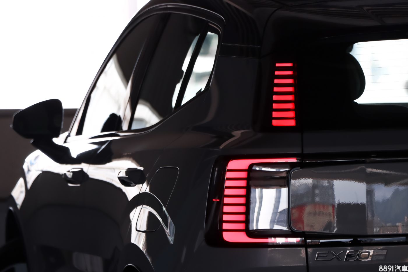 Plus版本在外觀視覺上,和頂規雙馬達完全一致,擁有符合空氣力學的19吋5輻黑鑽石切割鋁圈,並採用雙色車身,展現跑格與科技感。不管是哪種版本,EX30的身形比例真的很美,精悍的車尾、剛硬的線條,搭配薄霧灰車色,讓整體看起來簡約卻有層次感。