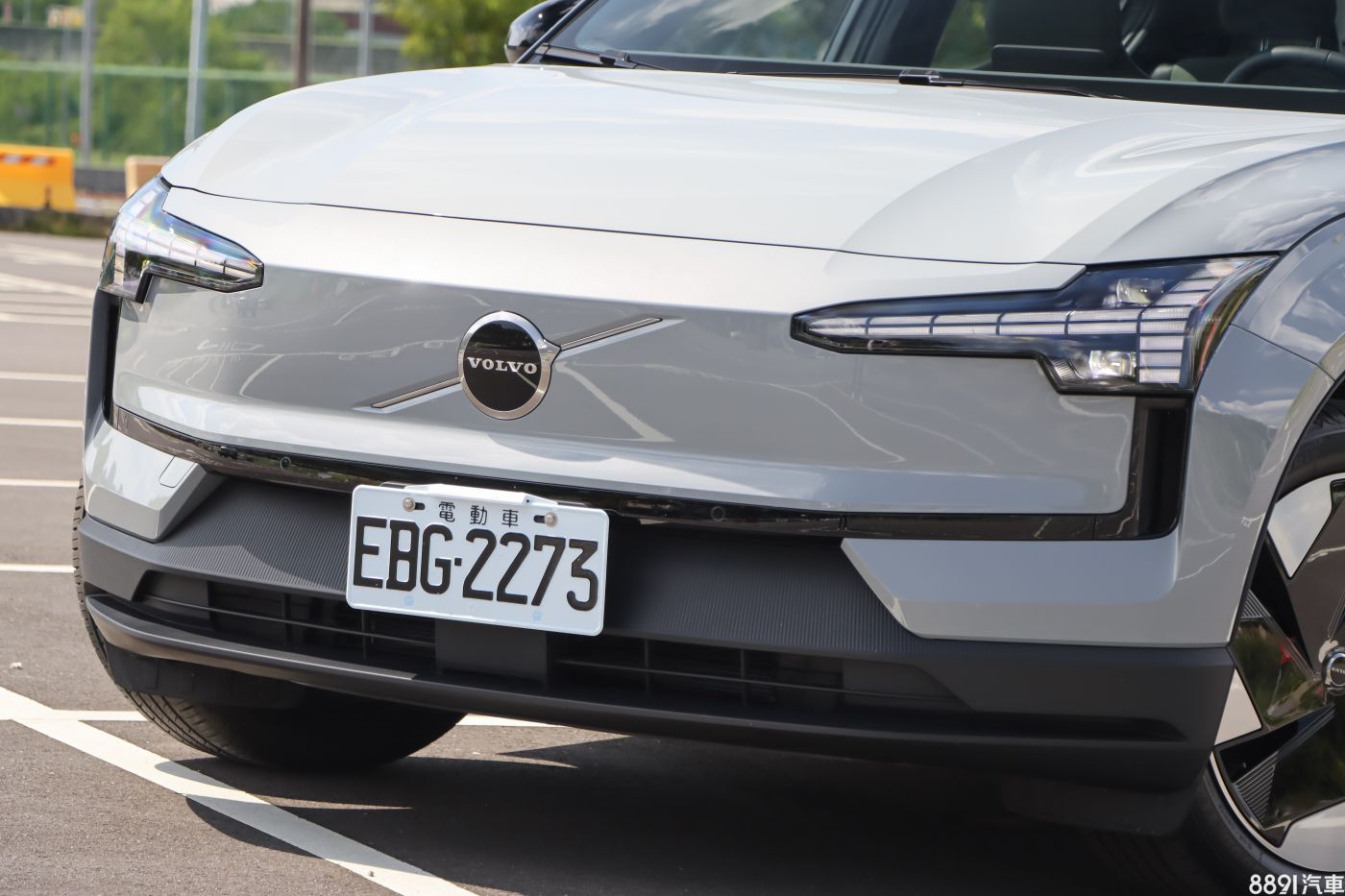車頭封閉式盾型格柵搭配「雷神之鎚」日行燈,延續品牌識別;夜間辨識度很高,走到哪都一眼看出是 VOLVO低風阻封閉格柵也呼應電動車調性。