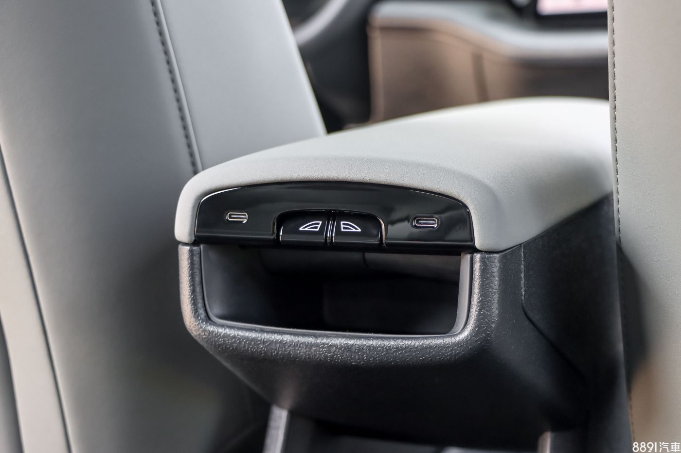 中央扶手後方有2組Type-C充電孔,和後窗開關集成在一區,使用起來相當方便,視覺也簡潔好看。