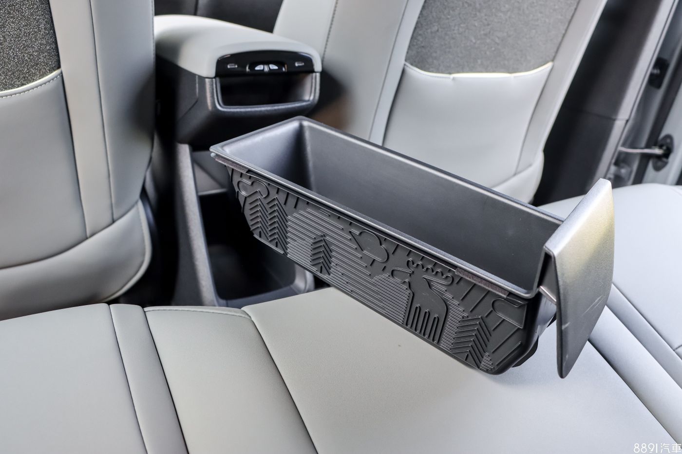 後座也有兩個USB Type-C插座可用,中央扶手下方的置物空間也可以被後座利用,抽屜形式讓你好拿好放,還可以整個拿出來整理,側面還有滿版北歐麋鹿,看起來很有品牌特色,也賦予這輛小勁旅滿滿機能。
