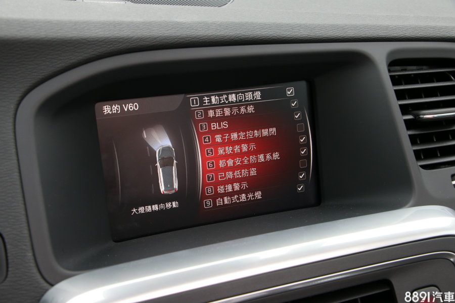 少了新世代辨識度極高的雷神之槌LED日行光條、水箱護罩等設計,V60在外觀上難免沒那麼亮眼,而全車系標配HID光感應頭燈組,並有AHB主動式遠光燈、主動轉向、轉向輔助照明等,雖無LED光源配置,功能也算一應俱全。