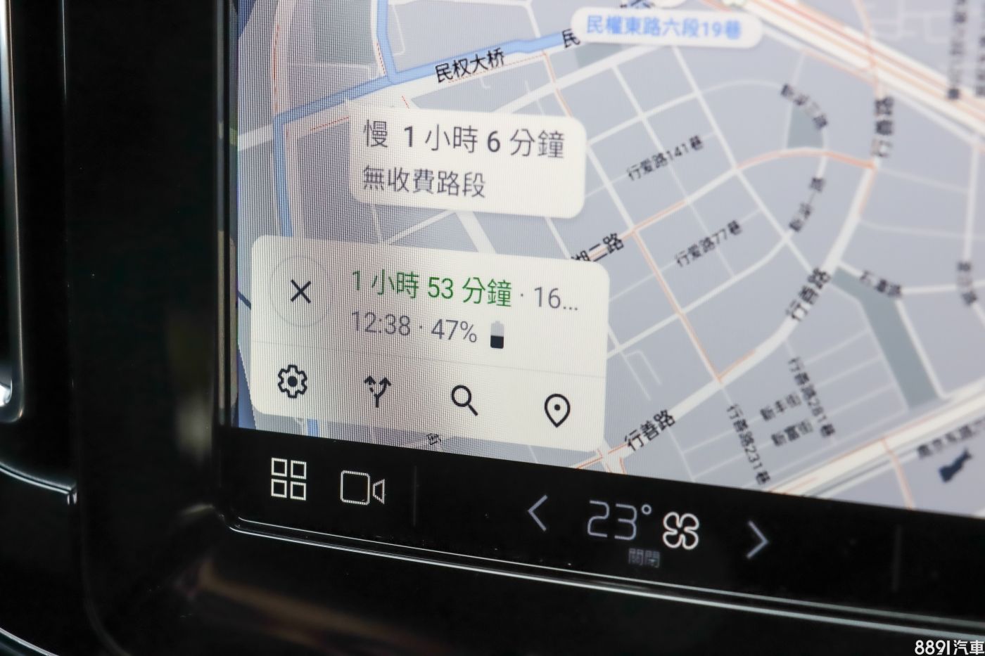 使用內建Google導航,會預估到達目的地的剩餘電量,這點倒是挺方便的,且準確性頗高。
