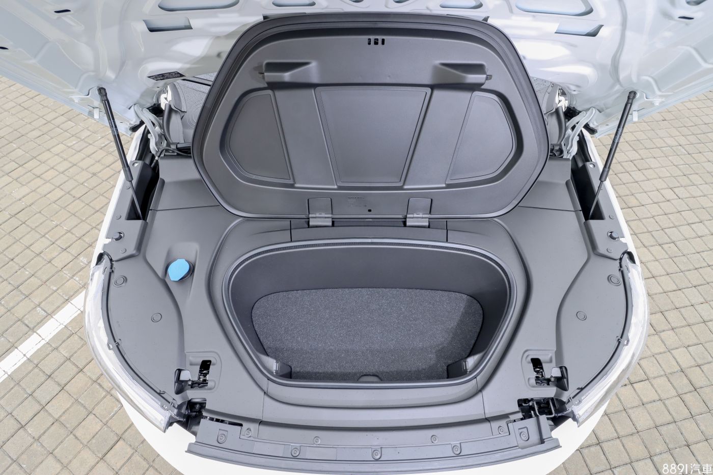 受惠於沒有引擎的純電身份,車頭前方具備31L的行李廂,不過由於開啟方式沒有尾門方便,適合擺放洗車工具這些日常使用率不高的物品。