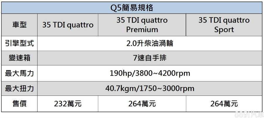 去年十月正式登場的Q5,同樣以第二代車型問世,外型偏向低調沉穩,並維持汽柴雙動力之外,在頂規車型上補齊主動安全科技,且另有更高規格的SQ5性能車款,樣樣俱備,只是國內的品牌形象仍不如雙B是致命傷。