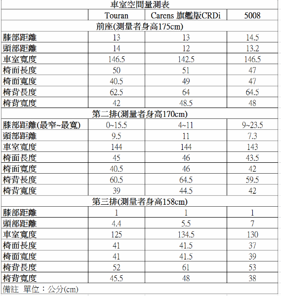 不管是為了親子或是三代出遊,對於MPV的買家來說,車內空間絕對是決勝的關鍵,縱使是身形較緊湊的5+2座轎式MPV,大家都明白第三排座椅空間是應急之用,但總是希望坐起來別太侷促、不適。這次我們鎖定VW新款5+2座轎式MPV Touran,以150萬內柴油MPV為篩選條件,其他選擇還有Kia Carens CRDi旗艦版與Peugeot 5008 1.6 Blue HDi,一同測量各自車室空間表現。